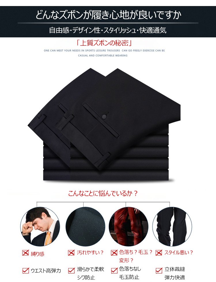 メンズビジネス弾力ズボン シンプル スマート カジュアル 高級感